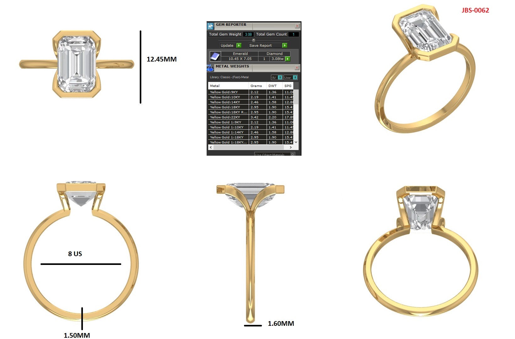 Custom Semi mount half bezel yellow gold to fit the Lab Grown Emerald cut diamond